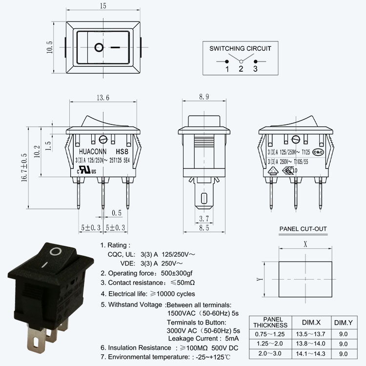 船型開關 HS8-F9-5-03H200-BB03