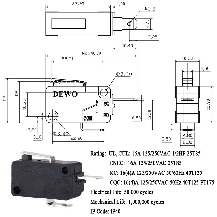 Terminal type:187 quick connect terminal/250 quick connect / Solder terminal/ left side PCB terminal/ right side PCB terminal/ Screw terminal