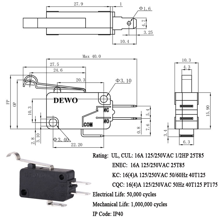 Terminal type:187 quick connect terminal/250 quick connect / Solder terminal/ left side PCB terminal/ right side PCB terminal/ Screw terminal