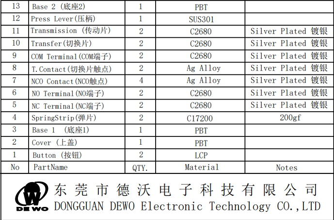 - DV micro switch