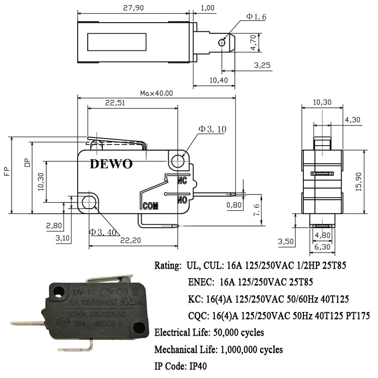 DV-16-A01-NN3-200E型微動開關