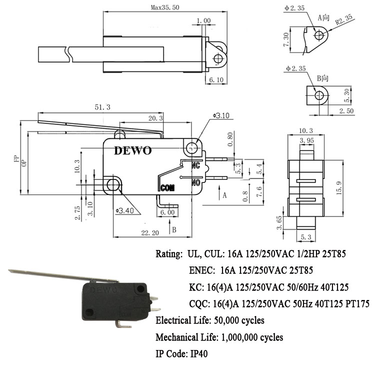 DV-16-A03-AA1-060E型微動(dòng)開關(guān)
