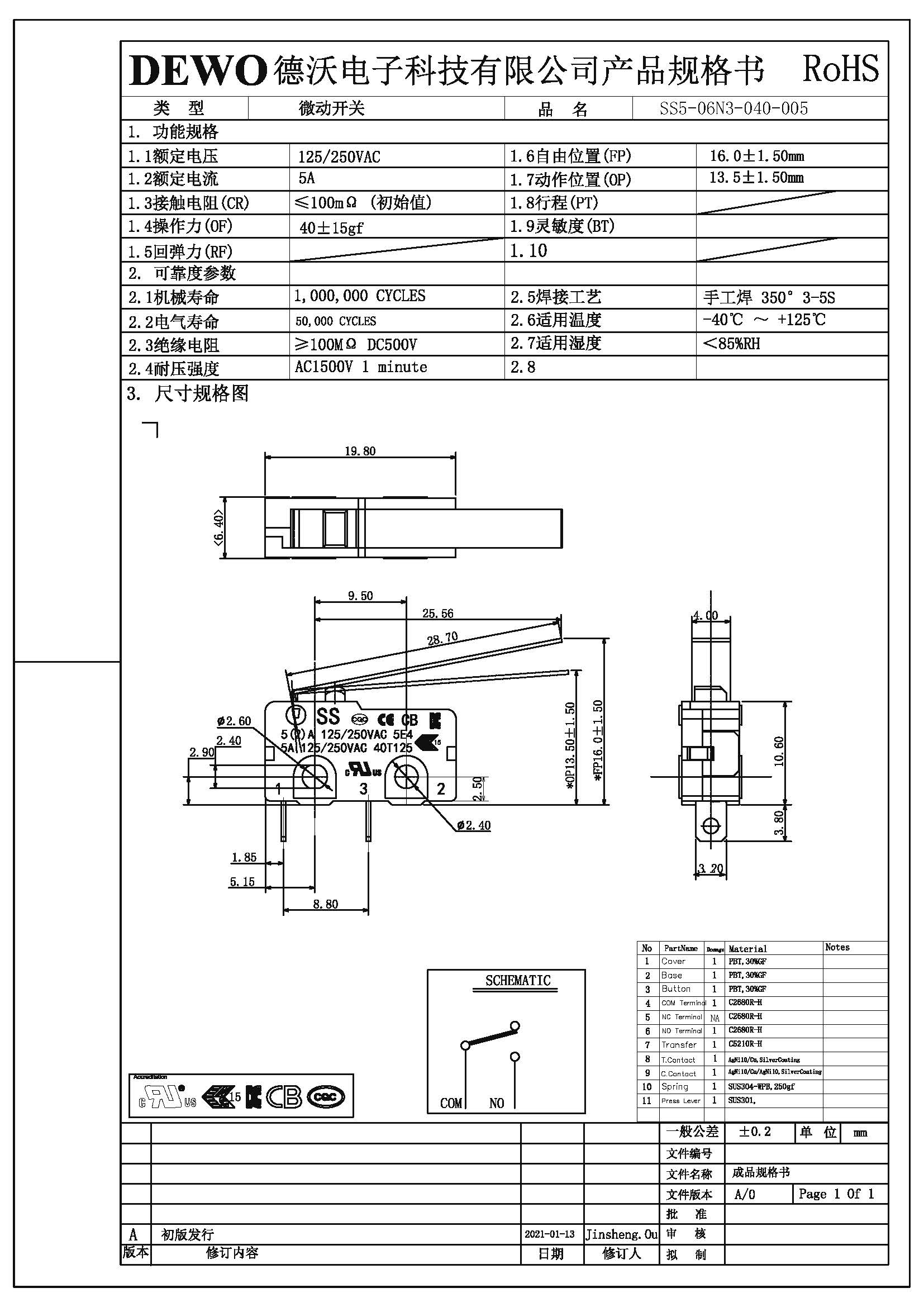 - DV型微動(dòng)開關(guān)