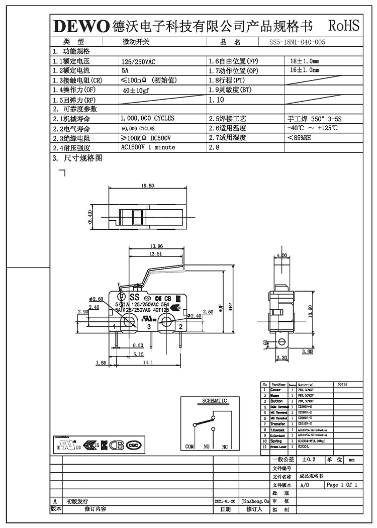 - DV型微動開關(guān)