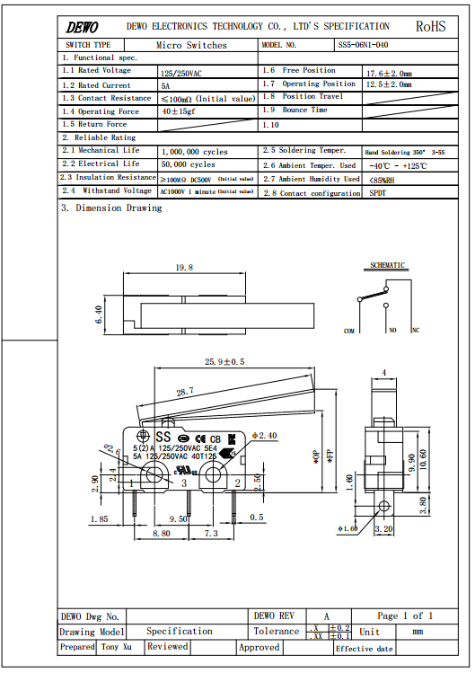 SS5-06N1辦公設(shè)備微動開關(guān)