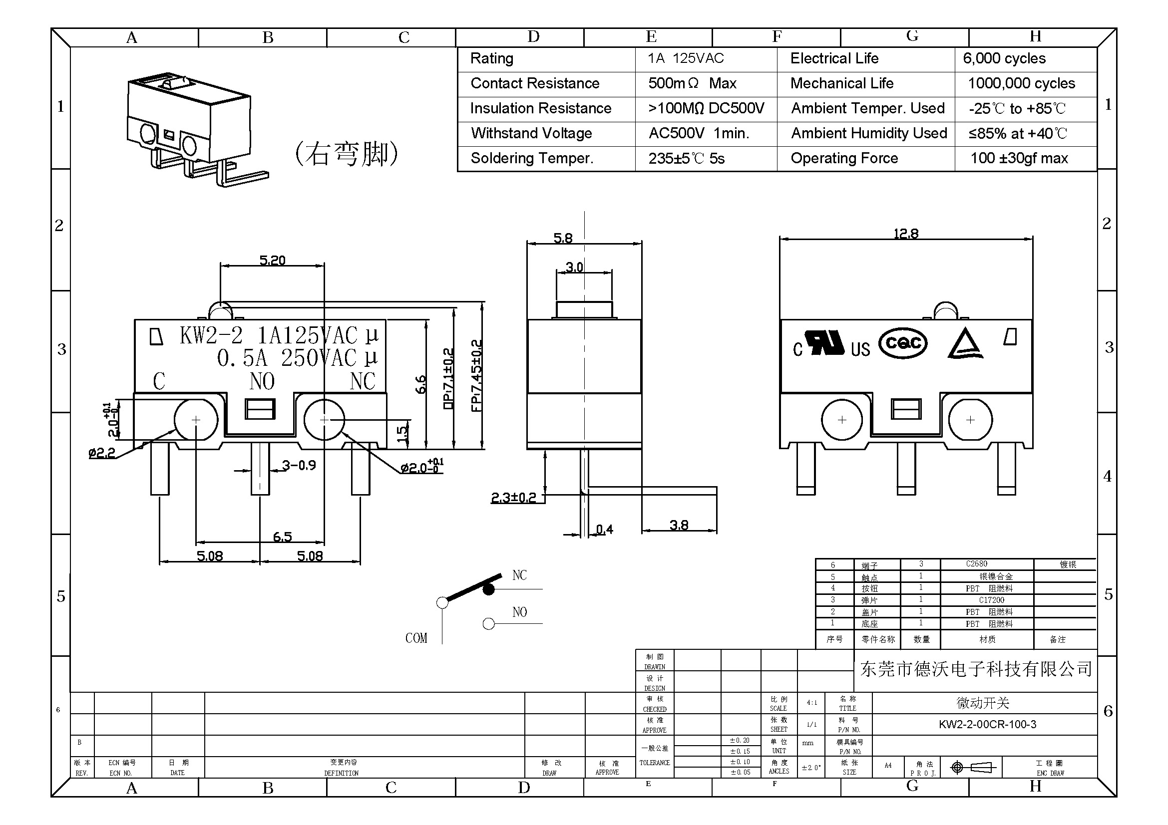 4.機(jī)械壽命:100萬(wàn)次.
